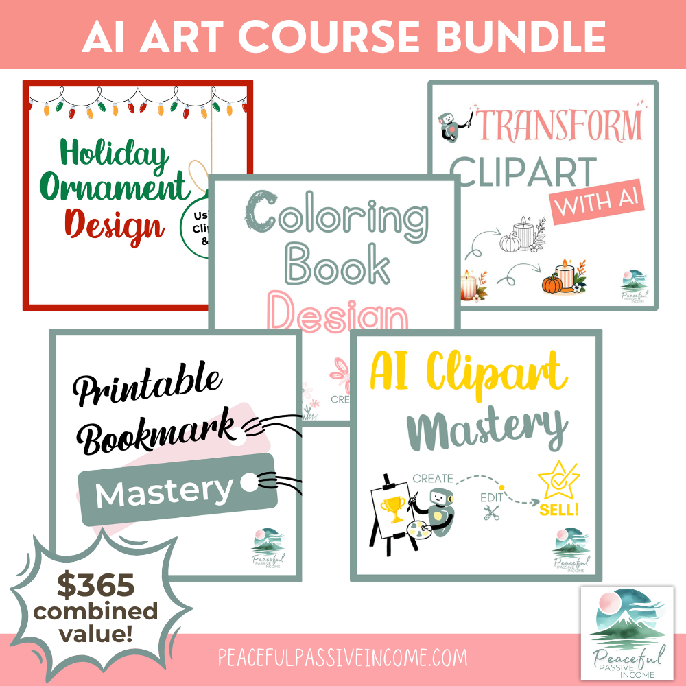 Use AI to create clipart, bookmarks, coloring pages, and more — and turn them into polished, sellable products (not random AI mush). This is an incredible value. I myself learned how to create and edit clipart images through her AI clipart mastery course. I had some experience creating clipart before the course, but I really learned how to create a consistent style and how to make sure the images are always high quality.