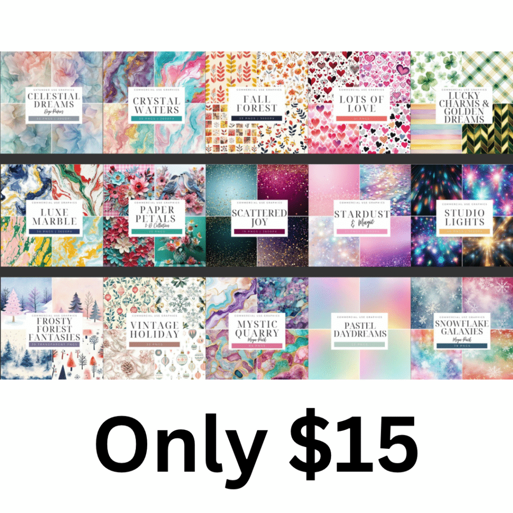 Snag 15 of our PLR Girl’s most loved digital paper collections, packed with dreamy textures, vibrant palettes, and versatile styles. That’s over 500 digital papers for just $15! Plus they all come with an extended use license meaning you can use them in PLR templates too.