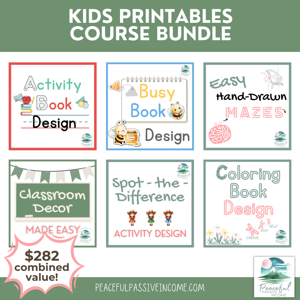6 courses where you learn how to create fun activity books, classroom decor, and kid-friendly printables teachers and parents will love.