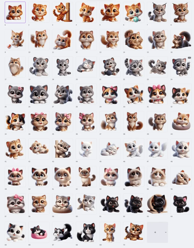 - 70 Unique Cartoon Kitten Designs – a variety of popular cat breeds in different playful poses
