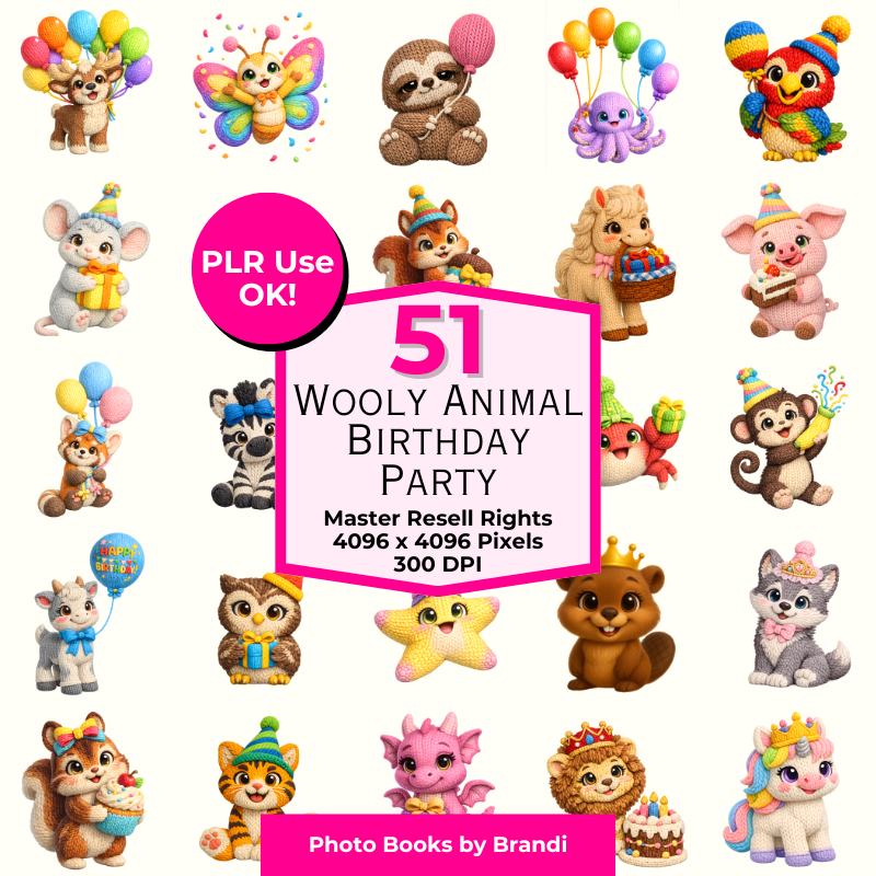 Grab this 51-piece Wooly Animal Birthday Party Clipart Bundle and start creating digital products that stand out and sell with style.