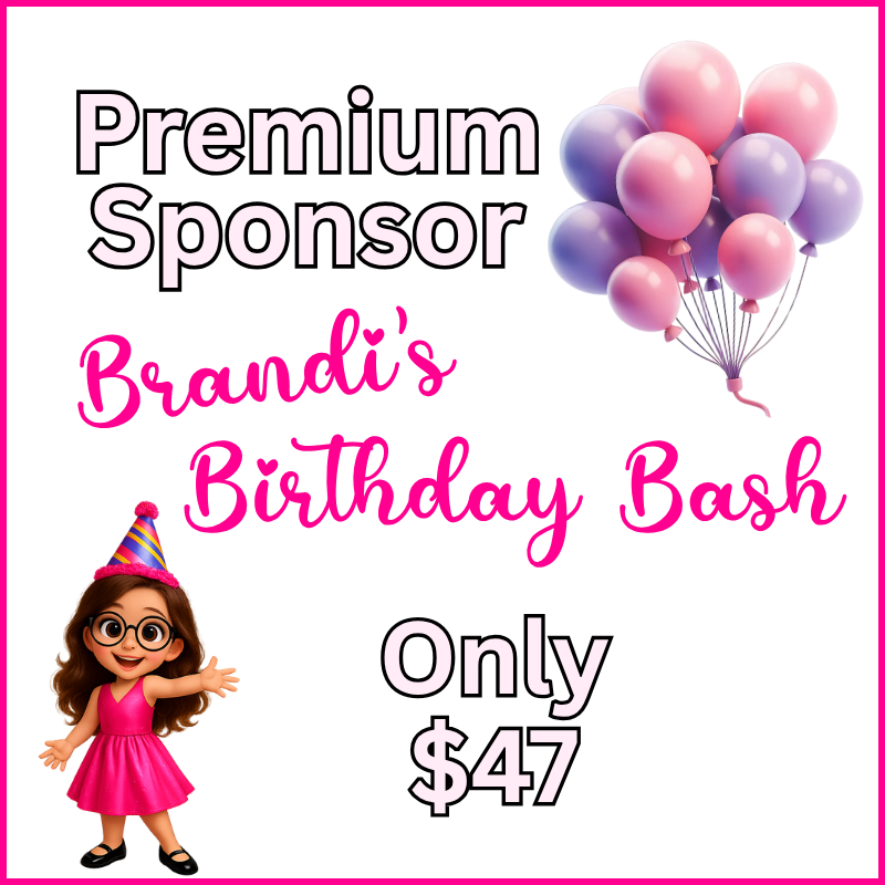 Sponsor Brandi’s Birthday Bash by Photo Books by Brandi with a premium sponsorship to get your offer featured at the top of the bundle offer page with a banner graphic to help you stand out from the other 57 contributors. But here’s the catch – only 3 sponsorship spot is available. You will receive the 1-3 placement spot in the bundle in the order of purchase.