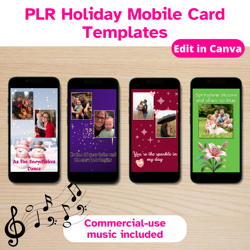 Get this done-for-you set of Holiday Mobile Card Templates—each with a 30-second video and commercial-use music included. Perfect for seasonal promotions, client gifts, or ready-to-sell digital products!