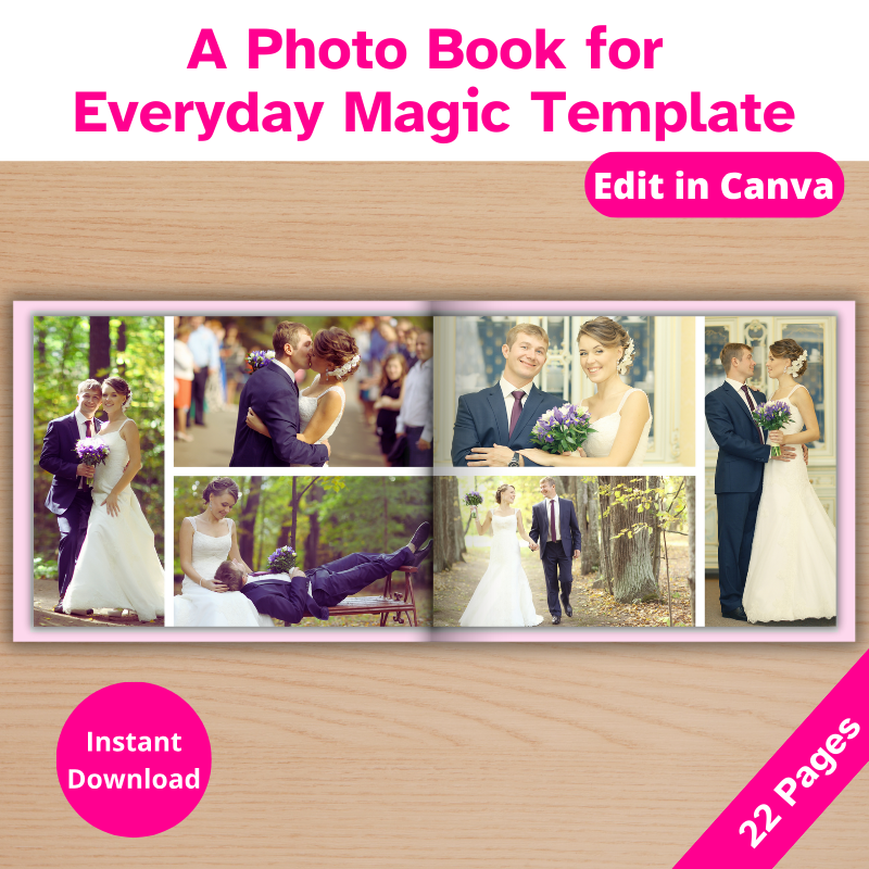 - A Canva template with 22 pages of unique photo layouts in landscape US letter size